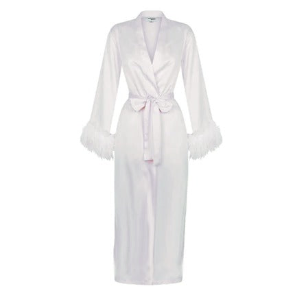 Luxurious Ostrich Feathers: Our robe boasts exquisite ostrich feather detailing, a symbol of extravagance and refinement.
