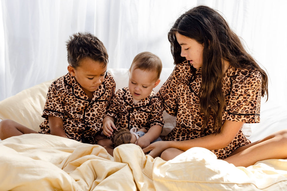 Kids Satin Personalised Pyjama Set - Short Sleeve Leopard Print