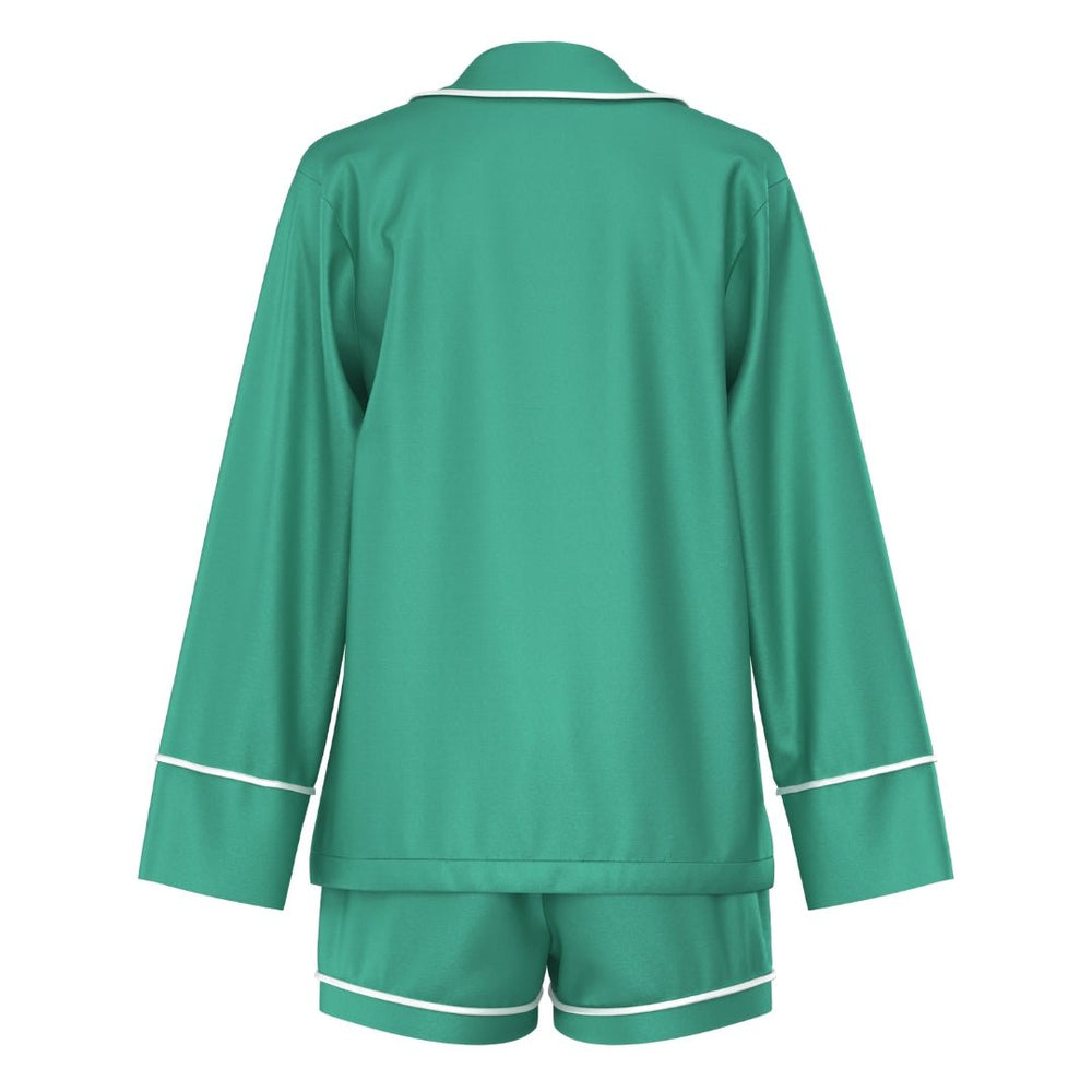 Satin Personalised Pyjama Set - Long Sleeve Emerald Green/White