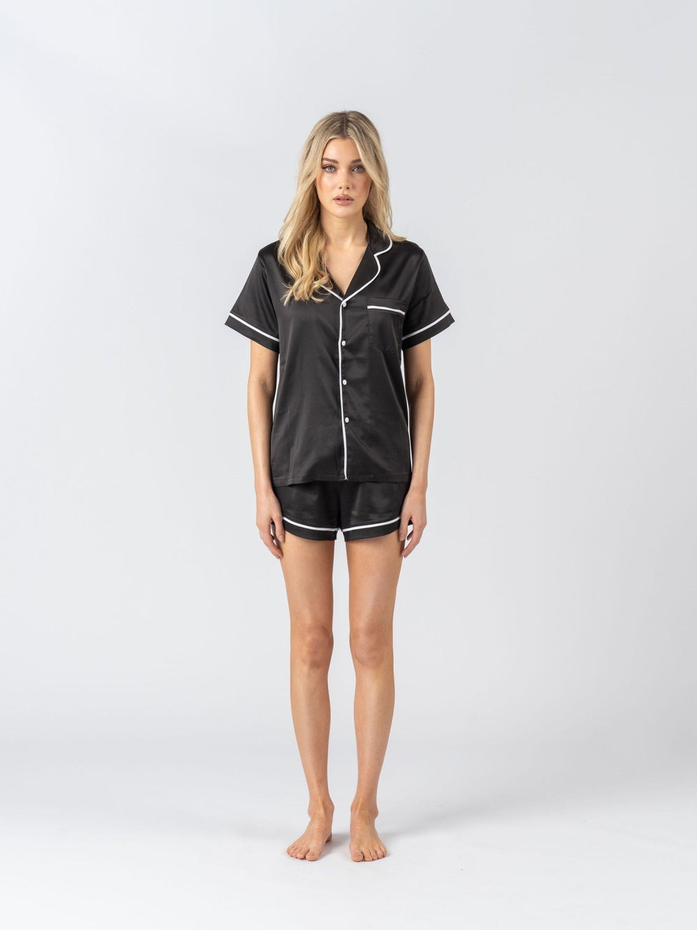 Satin Personalised Pyjama Set - Short Sleeve Black/White