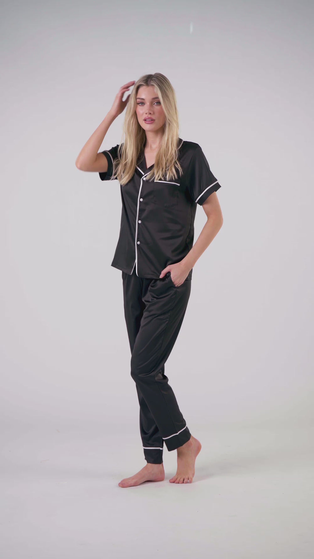 Satin Personalised Pyjama Set - Short Sleeve & Long Pants Black/White