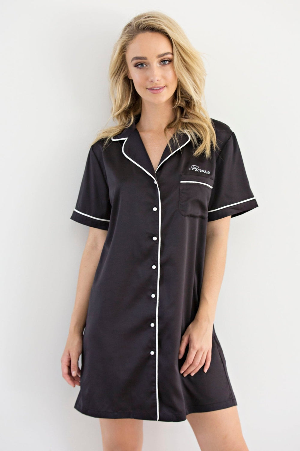 Satin Personalised Short Sleeve Boyfriend Shirt - Black/White