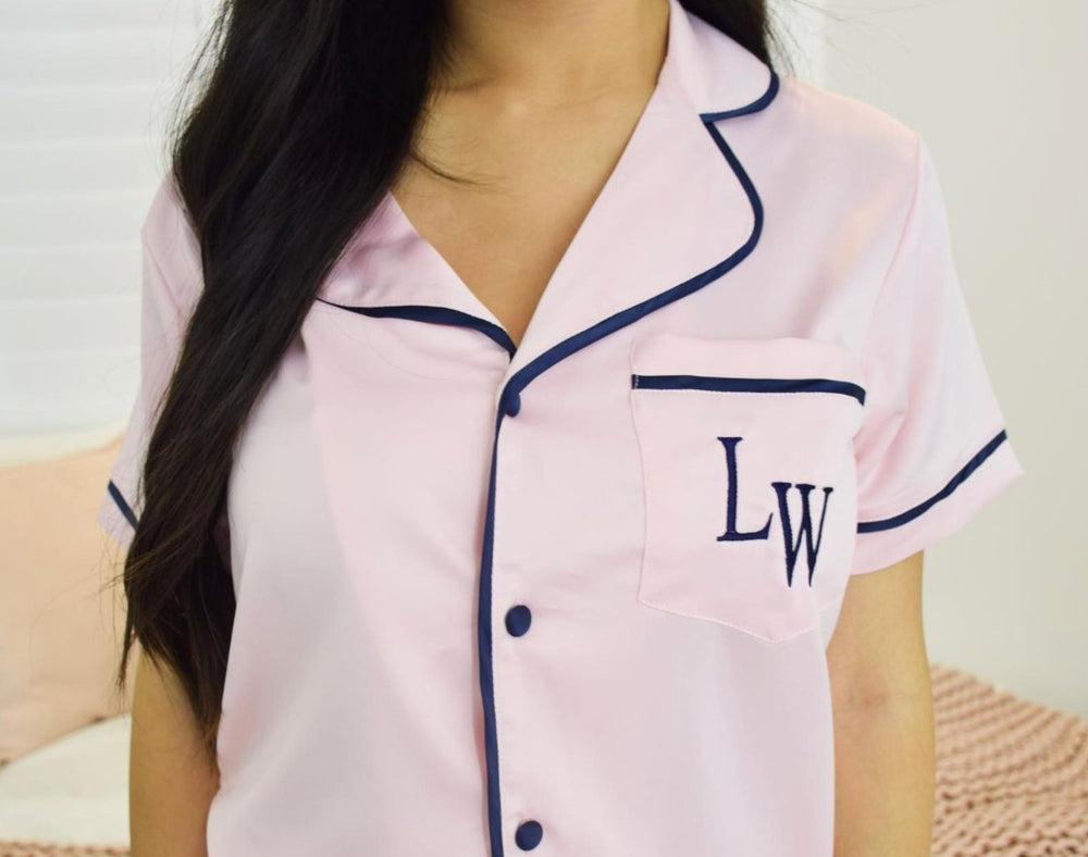 Satin Personalised Short Sleeve Boyfriend Shirt - Pink/Navy