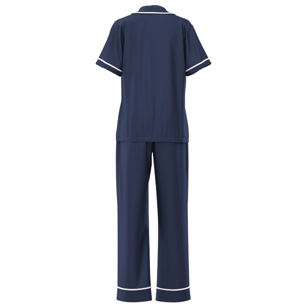 Men's Satin Personalised Pyjama Set - Short Sleeve & Long Pants Navy/White