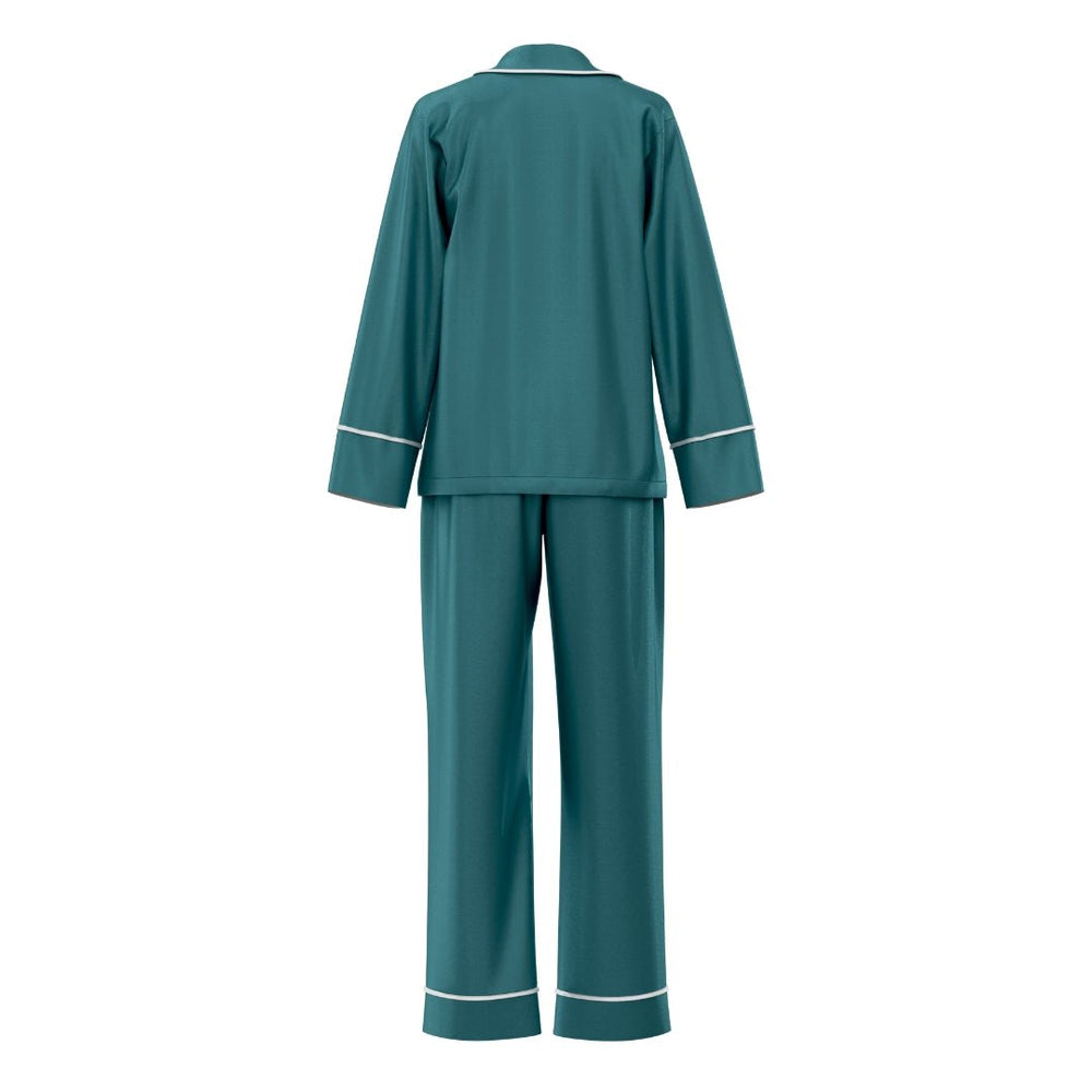 Men's Satin Personalised Pyjama Winter Set - Long Sleeve & Long Pants Teal/White