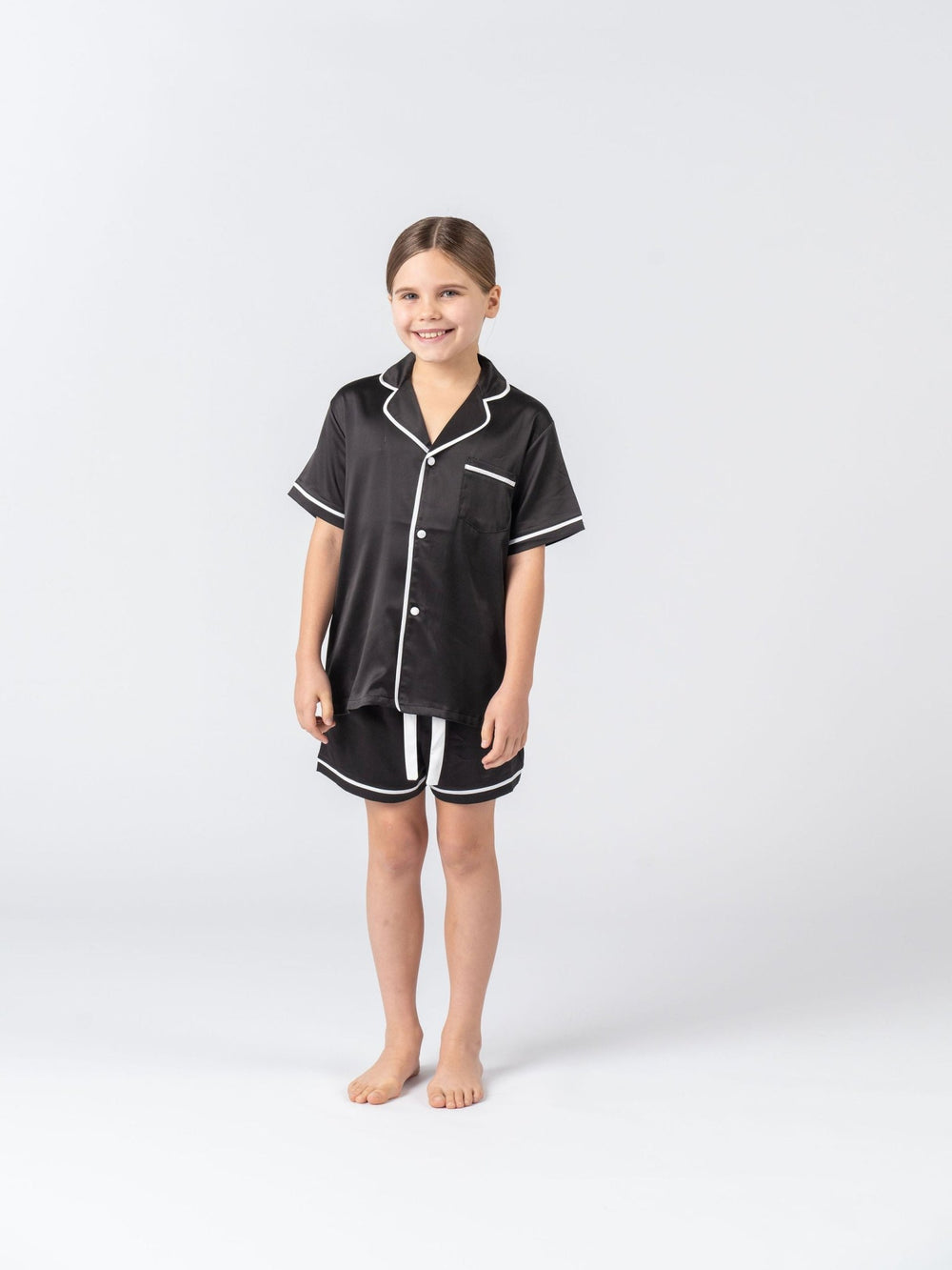 Kids Satin Personalised Pyjama Set - Short Sleeve Black/White