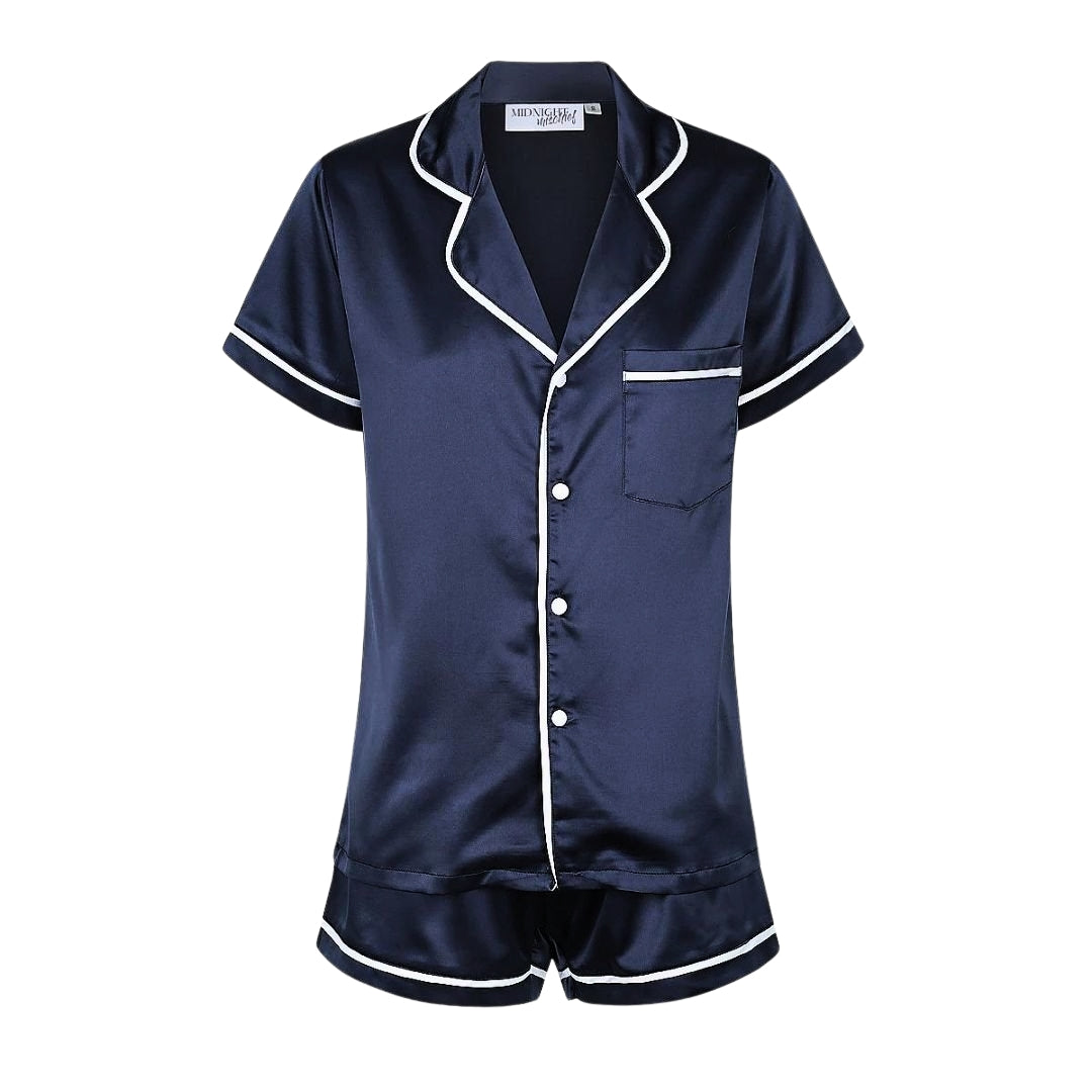 Satin Personalised Pyjama Set - Short Sleeve Midnight Navy/White