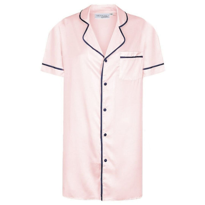 Satin Personalised Short Sleeve Boyfriend Shirt - Pink/Navy