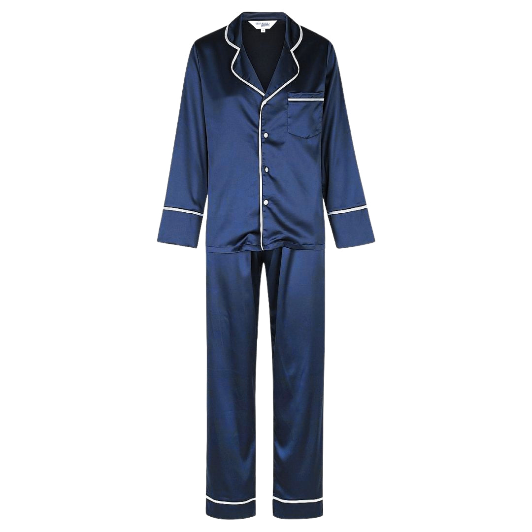 Satin Personalised Pyjama Winter Set - Long Sleeve & Long Pants Navy/White
